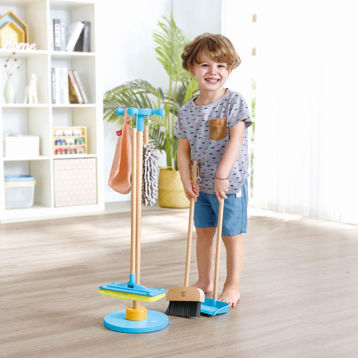 Aprendé a mantener las cosas limpias y ordenadas con esta escoba, mopa, pala, plumero, lampazo y hasta un soporte para almacenar el equipo. Todo lo necesario para que tu casa luzca impecable.