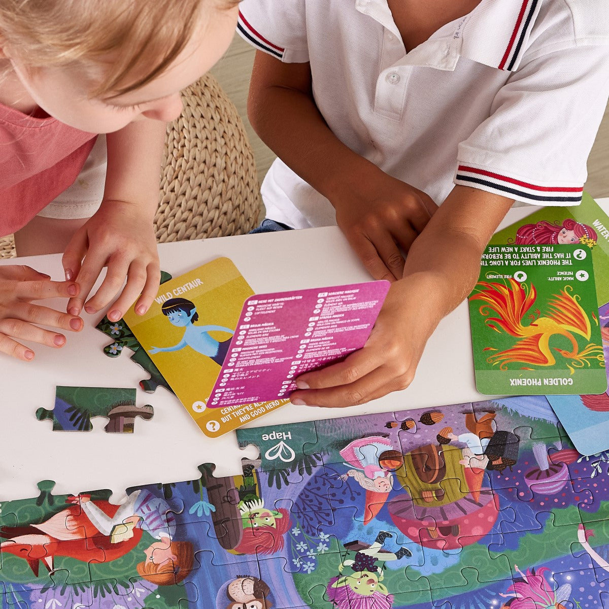 Visitá una tierra mágica y encantada con este hermoso rompecabezas de suelo de 210 piezas y 1.5 metros de largo. Apagá las luces y mirá cómo las piezas brillan en la oscuridad. Incluye 10 tarjetas con datos divertidos sobre criaturas mágicas.