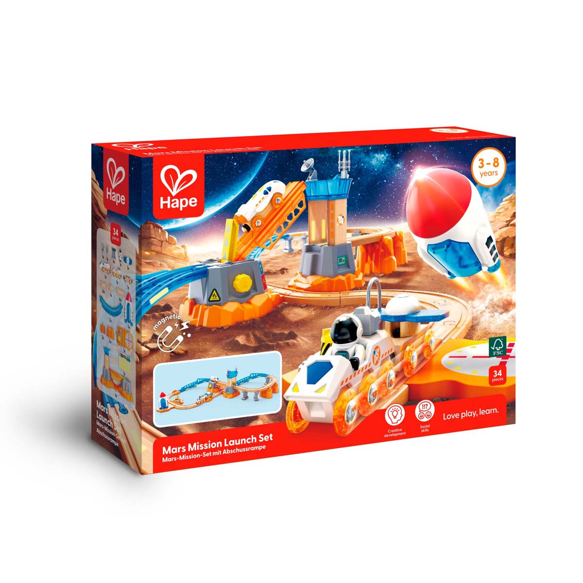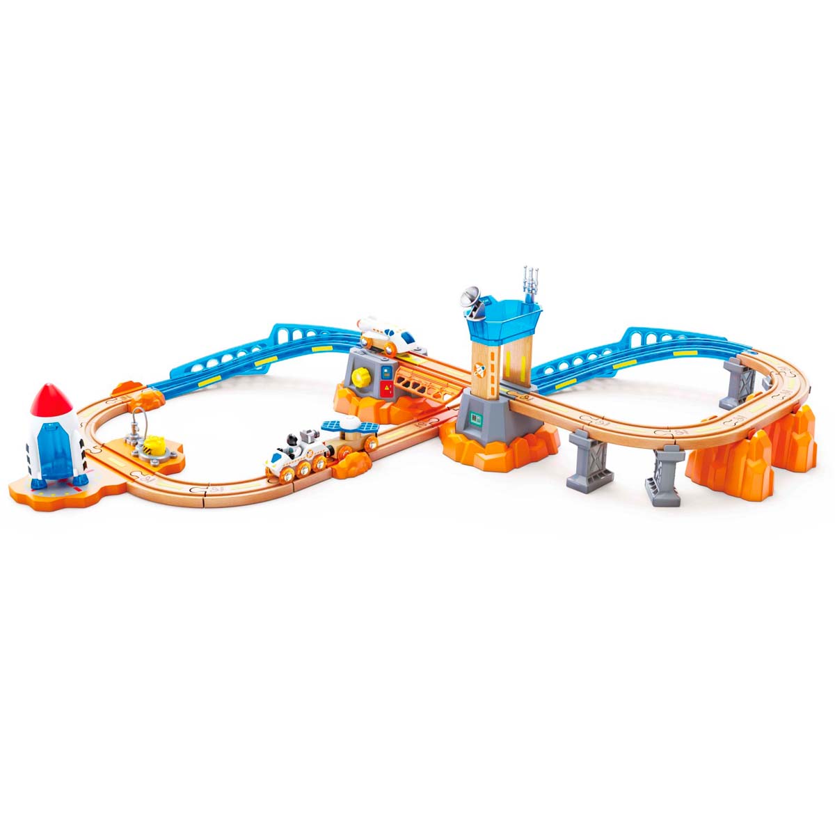 Impulsá el tren espacial para explorar los secretos de Marte con tu propio transbordador espacial, vehículo satelital, lanzador y rover. Despertá tu creatividad con elementos que brillan en la oscuridad y escenarios espaciales.