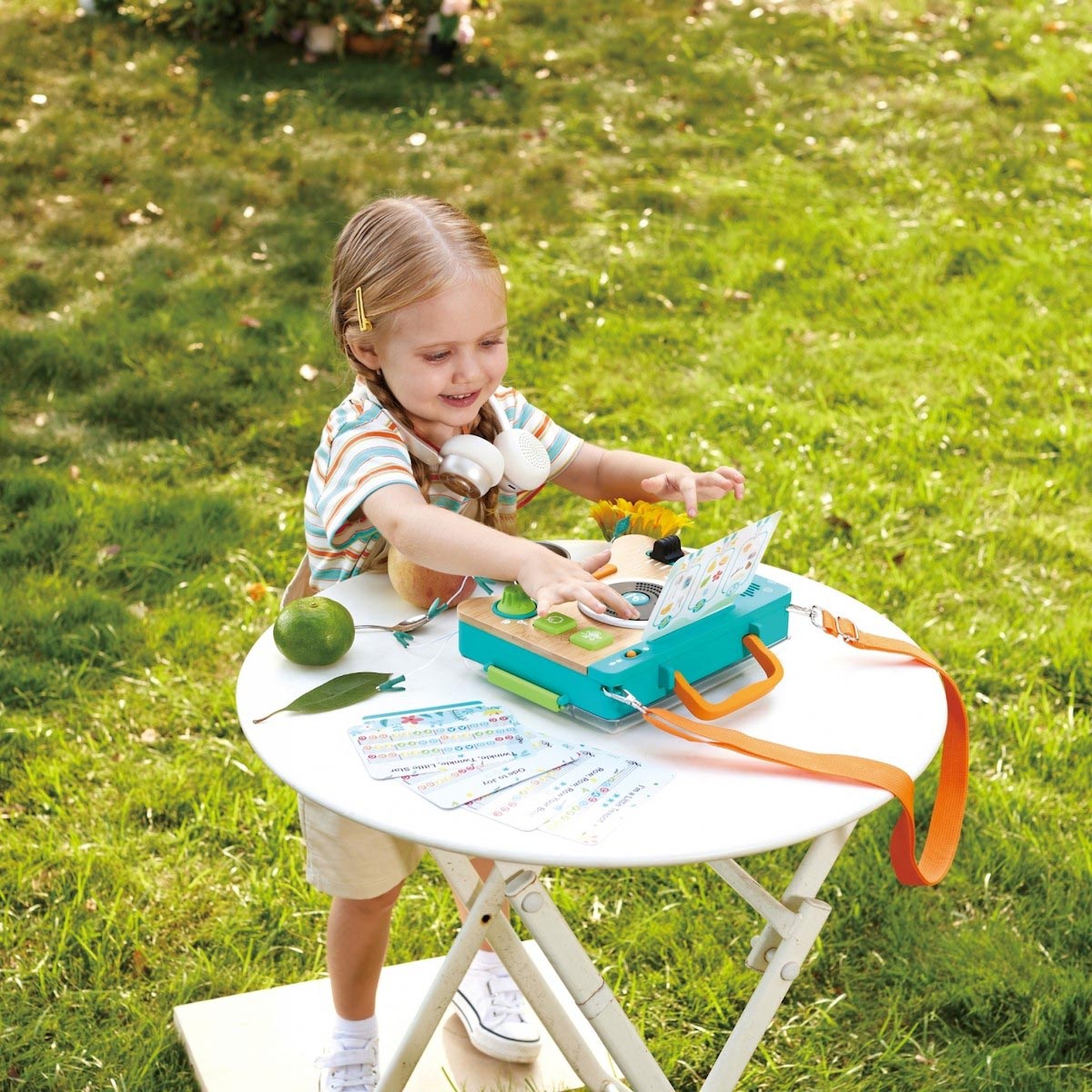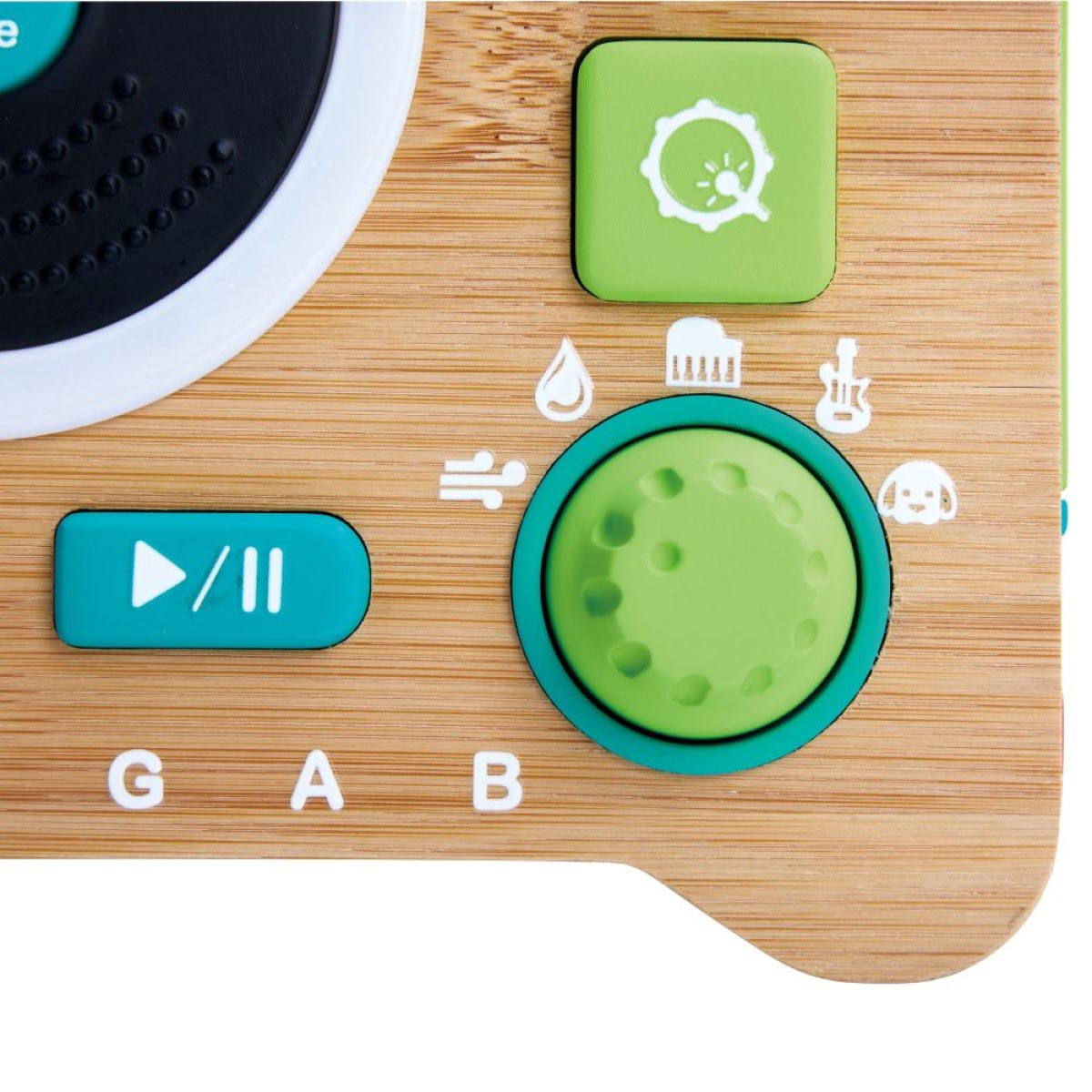 Un sintetizador con controladores de DJ y 3 tarjetas de aprendizaje. Los chicos pueden explorar y conectar materiales naturalmente conductores como hojas, pétalos, frutas y metales para crear sonidos. También incluye 5 canciones y diversas funciones.